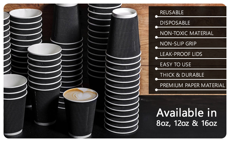 - TRIPLE-WALLED INSULATION: Nationwide Paper's black ripple coffee cups feature triple-walled insulation, ensuring your coffee stays hot while keeping your hands cool