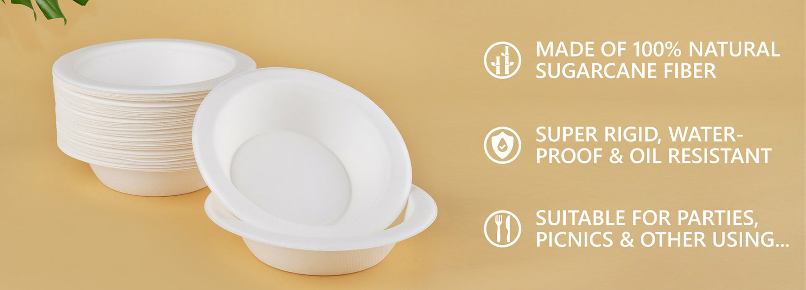 - ENVIRONMENTALLY FRIENDLY BOWL: Our strong and sturdy sugarcane bagasse bowl is more environmentally friendly and easily compostable without harming nature