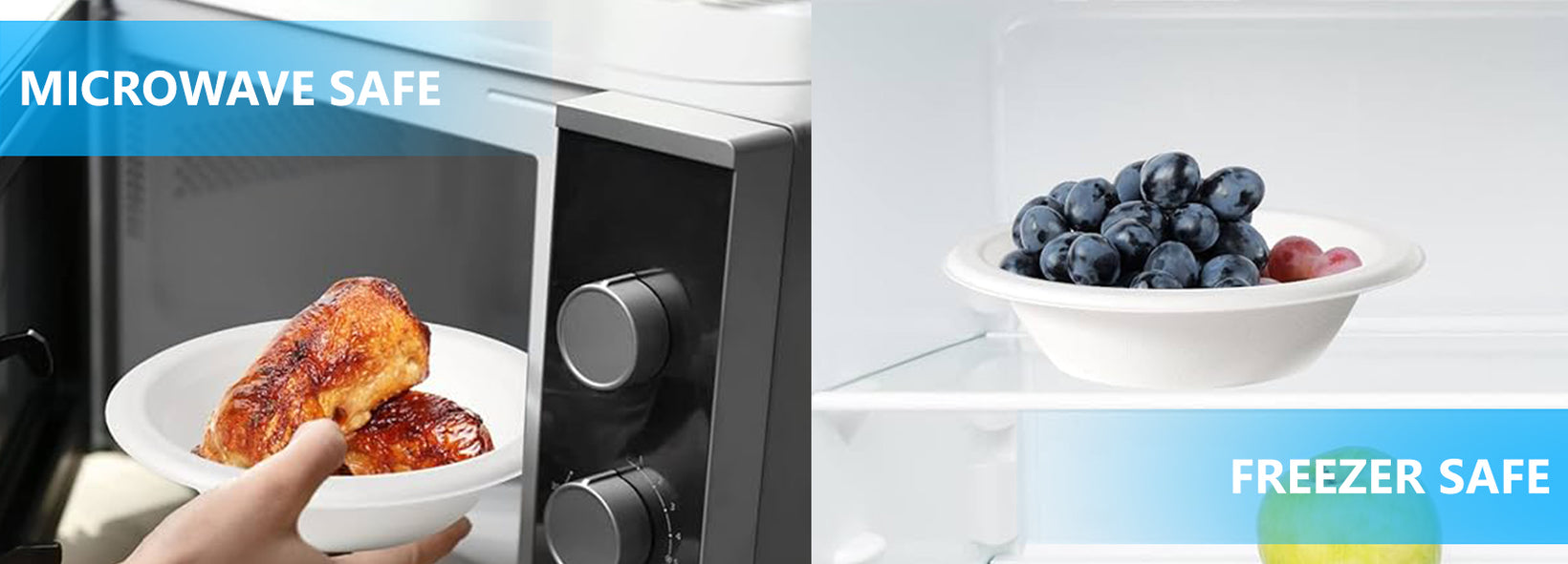 - MICROWAVE & FREEZER SAFE: Suitable for hot and cold food in solid, liquid, and oil forms. The bagasse microwave bowls are odorless and do not contain any plastic, gluten, or wax lining