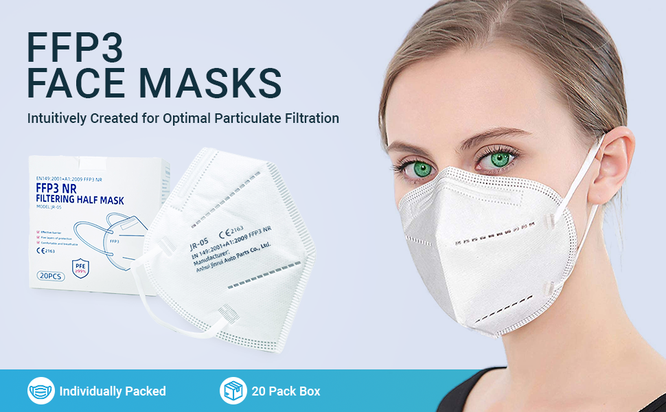 - FFP3 FACE MASK: Each mask is individually packed in a PE bag and offers a particulate filtration efficiency of 99%. Since this mask does not require an additional valve, it provides protection for both the wearer and the environment, making it suitable for use in various settings